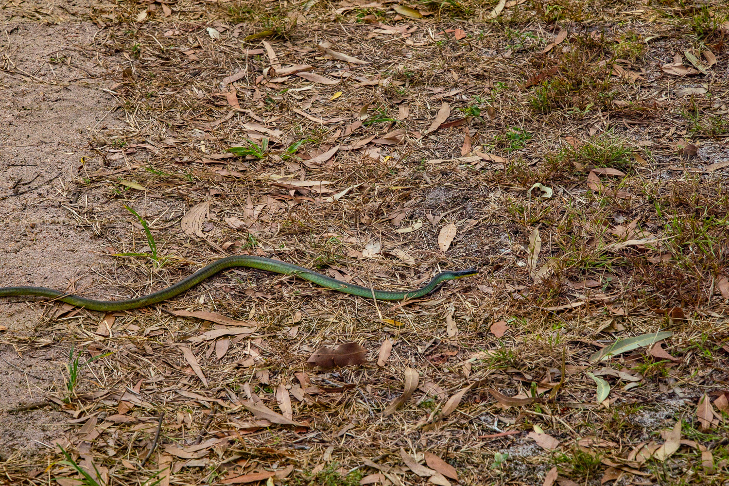 К сожалению, было ещё слишком темно, а змей постоянно перемещался в поисках чего-то очень ему нужного в столь ранний час, чтобы можно было сделать хороший снимок, но что-то у меня получилось.