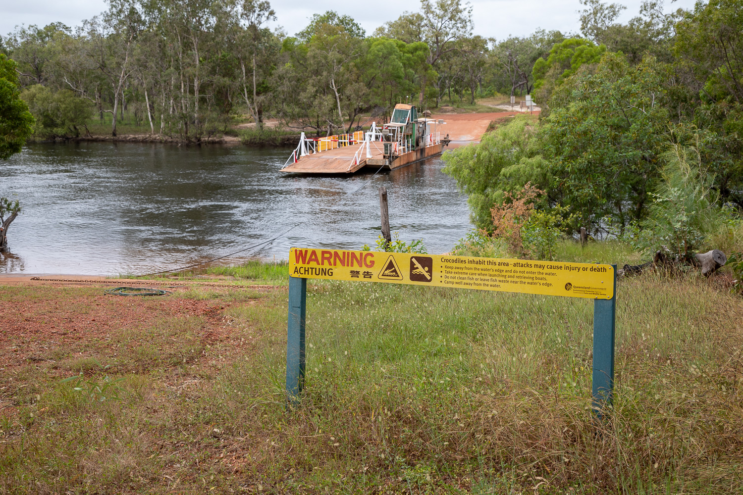 Весьма забористые повороты дороги, идущей через покрытые тропическими лесами горы, мы пересекли без приключений и спустились в равнину с западной стороны Great Dividing Range. К сожалению, несмотря на кучу знаков, расставленных по всему серпантину с нарисованными на них казуарами, ни одного из этих уникальных птиц нам увидеть не удалось. Видимо, знаки знаками, а живут они примерно там же, где и страшные зубастые крокодиблы, коих по рассказам тут должно быть тоже видимо-невидимо, чуть ли не в каждом ручье.