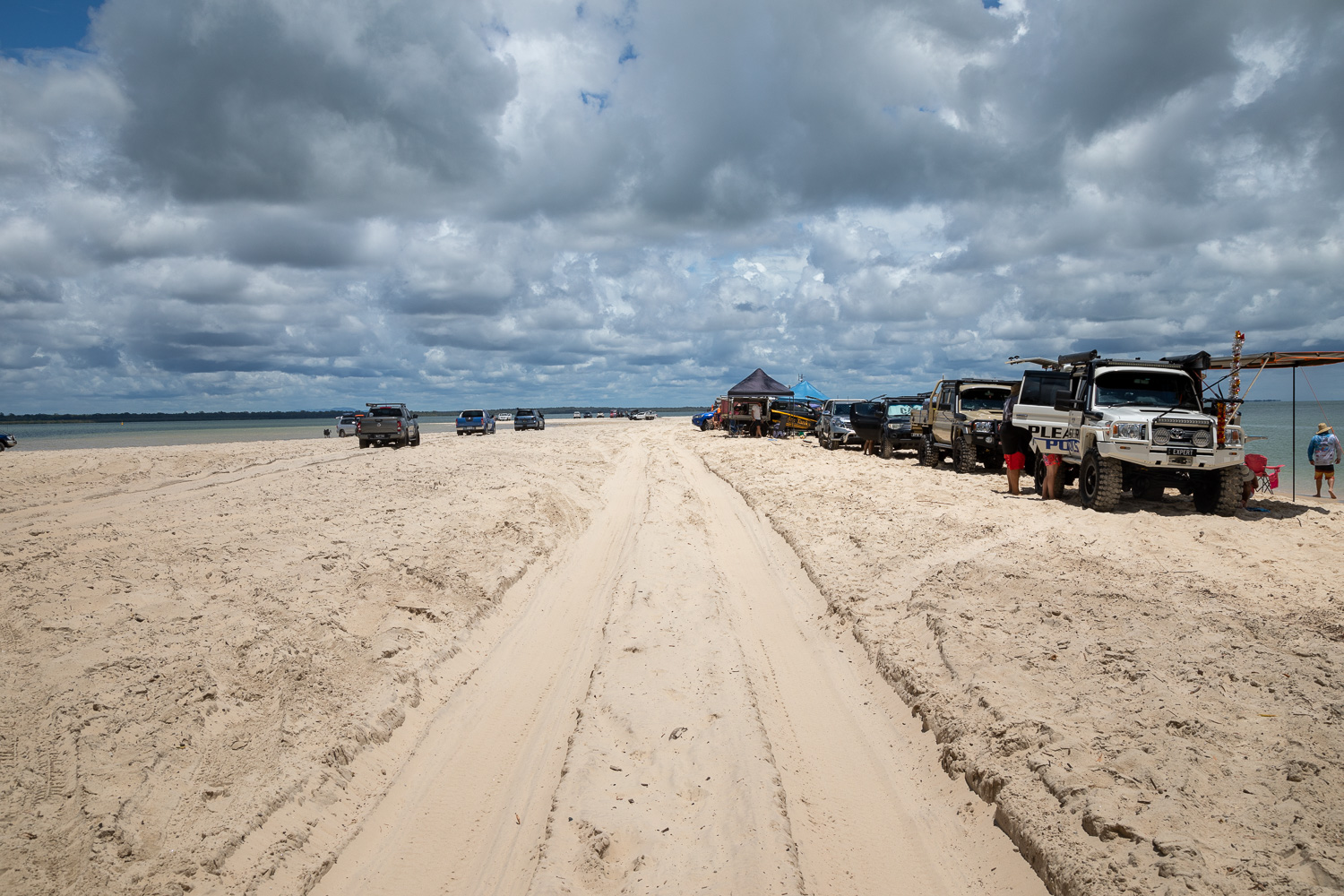 Доехали до Inskip Point, спустили колёса и без проблем зашкреблись по песку на баржу Manta Ray.